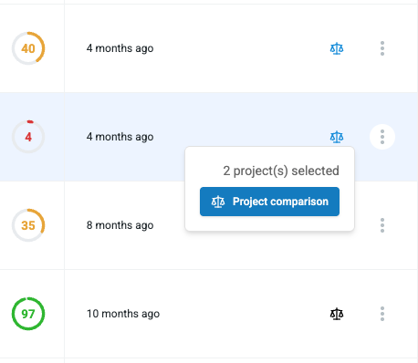 In the report overview, every project containing a final report features a ⚖️ comparison icon.